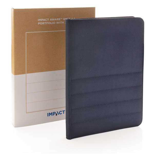 Teczka konferencyjna A4 z notatnikiem (20 kremowych kartek 80 g/m2 z papieru z recyklingu w linie), zamykana na zamek błyskawiczny, wewnątrz duża kieszeń, kieszeń na telefon oraz 2 dodatkowe kieszenie, 4 miejsca na karty kredytowe i pętla na akcesoria do pisania, tkanina zewnętrzna i wewnętrzna z poliestru AWARE™ RPET, który został wykonany z butelek PET pochodzących z recyklingu z identyfikowalnym źródłem, produkt został wykonany z 10 butelek plastikowych poddanych recyklingowi, 2% zysku ze sprzedaży każdego jest przekazywane do fundacji Water.org, w ozdobnym, kraftowym pudełku