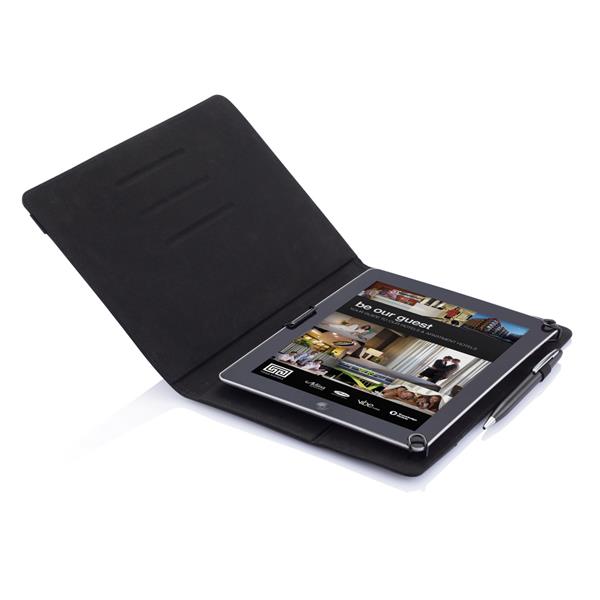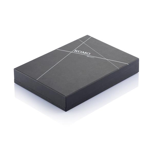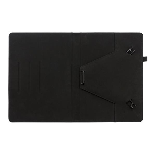Stylowa teczka konferencyjna Komo wykonana została z prawdziwej skóry, posiada zewnętrzne kieszenie i zintegrowany uchwyt na tablet, który stanie się nieodłącznym elementem Twoich prezentacji. Unikalny i opatentowany system jest dostosowany do większości popularnych tabletów 9-10”. Wzór zastrzeżony®
