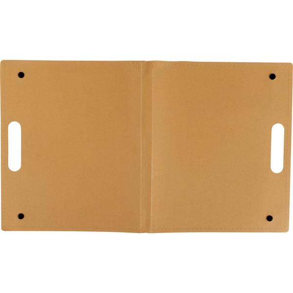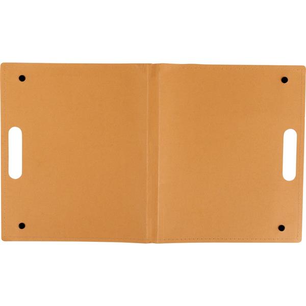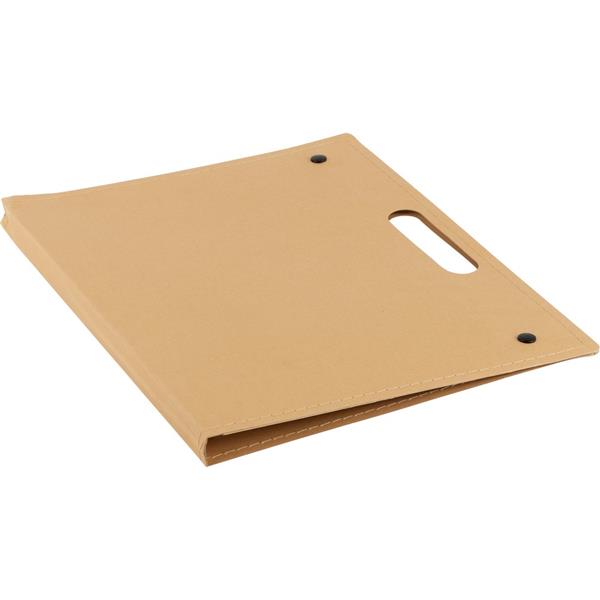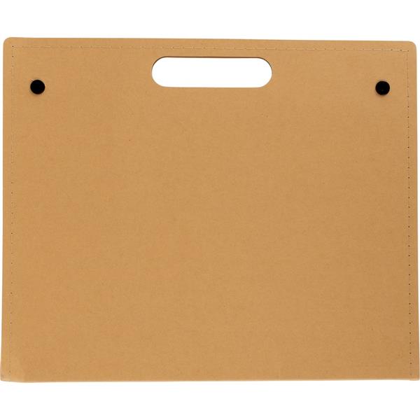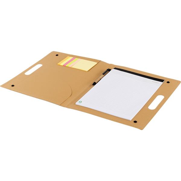Teczka konferencyjna z uchwytem, notatnik (ok. A4, 20 kartek w linie), papierowy długopis i 100 karteczek samoprzylepnych (4 kolory po 25 szt. z każdego)