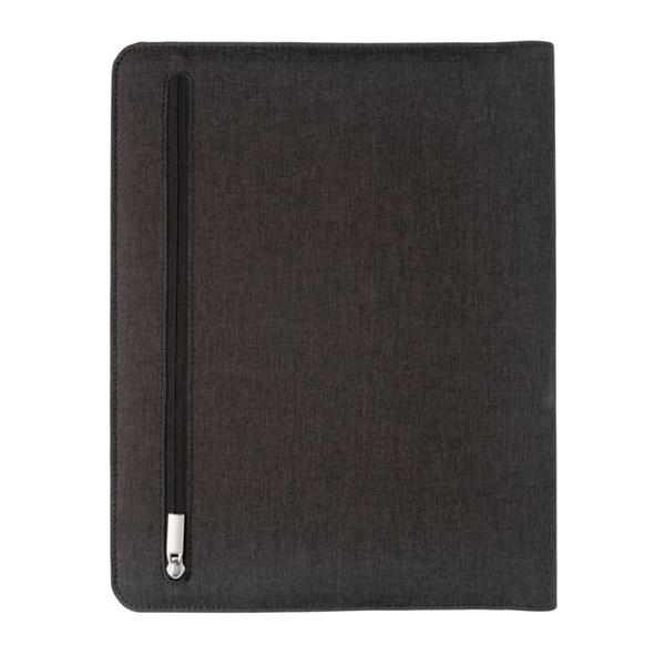 Teczka konferencyjna z notatnikiem A4 (20 kartek w linie, zadruk jednostronny), stojak na telefon lub tablet, wewnątrz kieszeń na telefon z transparentnym okienkiem pasującym do większości popularnych telefonów np. iPhone 6, Samsung S6 i inne, wykonana z lnu, kieszeń na dokumenty, zewnętrzna kieszeń na zamek błyskawiczny, wewnątrz 5 kieszeni na wizytówki/karty i uchwyty na akcesoria np. power-bank (nie dołączony) albo kabel, kompatybilna z tabletami iOS, Android, Microsoft Windows