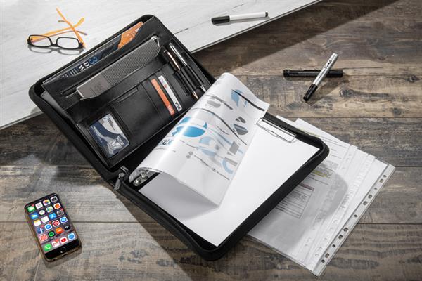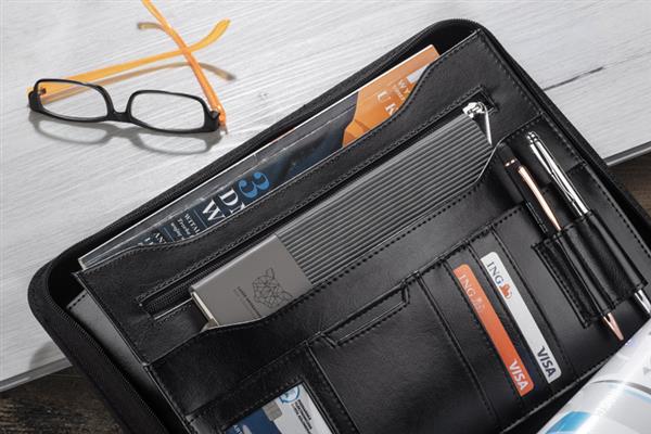 Elegancka teczka konferencyjna, która jest niezastąpiona na spotkaniach biznesowych. Logo wykonamy na powierzchni teczki.