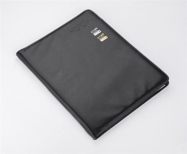 Elegancka, klasyczna teczka wykonana z materiału skóropodobnego (PU). Wewnątrz 1 duża kieszeń na dokumenty, 1 średnia kieszeń oraz 6 małych kieszonek np. na wizytówki. Wyposażona jest w notes w linie (20 kartek A4). Notes nie jest umocowany na stałe, ale wsuwany w kieszonkę, dzięki czemu można go łatwo wymienić. Logo można wykonać wieloma technikami na powierzchni teczki.