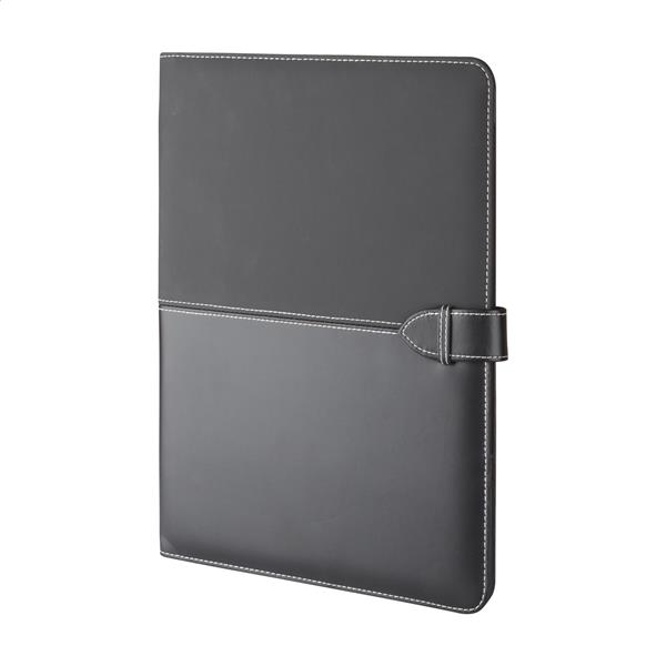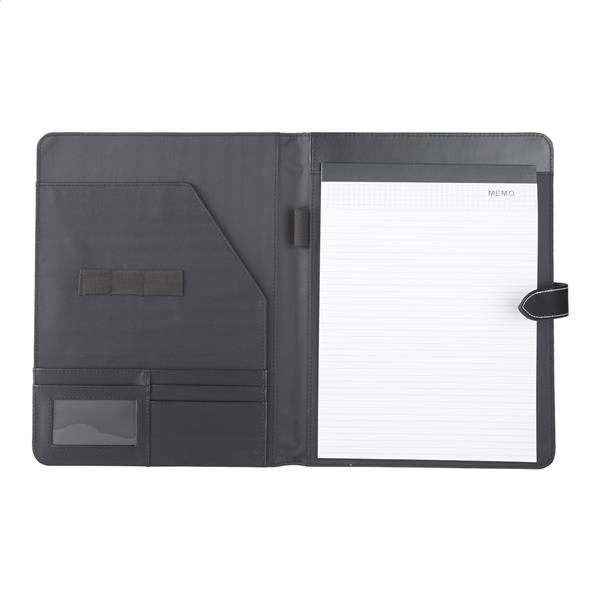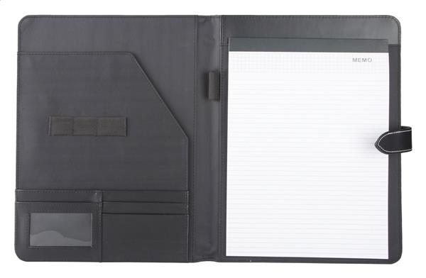 Teczka na dokumenty A4 ze skóry PU, z notatnikiem z 20 kartkami w linie oraz miejscem na długopis i wizytówki.