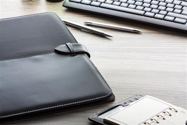 Teczka na dokumenty A5 ze skóry PU, z notatnikiem z 20 kartkami w linie oraz miejscem na długopis i wizytówki.