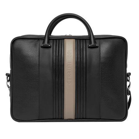 Linia podróżna CERRUTI 1881 `Delano` bawi się kontrastującymi kolorami i teksturami, z pięknie teksturowaną skórą wegańską (PU) obok centralnego beżowego paska z logo luksusowo wytłoczonym logo CERRUTI 1881.