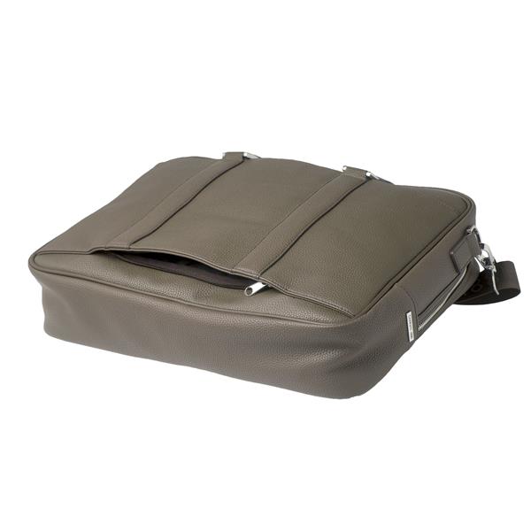 Teczka na dokumenty Hamilton firmy CERRUTI 1881. Wykonana z szarej drobnoziarnistej eko skóry i z wysokiej jakości nylonowej podszewki. Wnętrze torby posiada specjalną kieszeń do przechowywania i ochrony 15-calowego laptopa. Torba jest wyposażona w zdejmowany i regulowany pasek na ramię z logo CERRUTI 1881. Logo marki umieszczone jest też na torbie. Zamki i zamki błyskawiczne wykończone są w kolorze chromowanym. Torba jest precyzyjnie wykończona, zarówno od wewnątrz, jak i z zewnątrz.