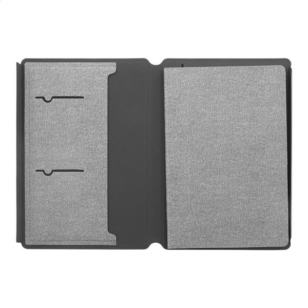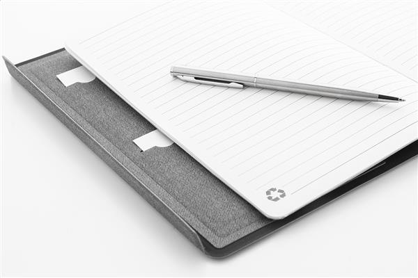 Teczka na dokumenty z recyklingowanej skóry PU w ??formacie A5 z wewnętrznymi kieszeniami organizacyjnymi i magnetycznym zamknięciem. Z 64-liniowanymi kartkami notatnika z papieru z recyklingu.