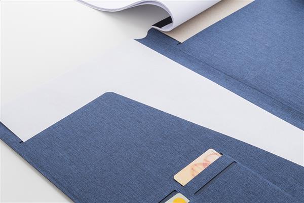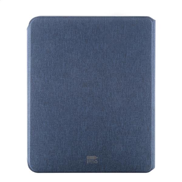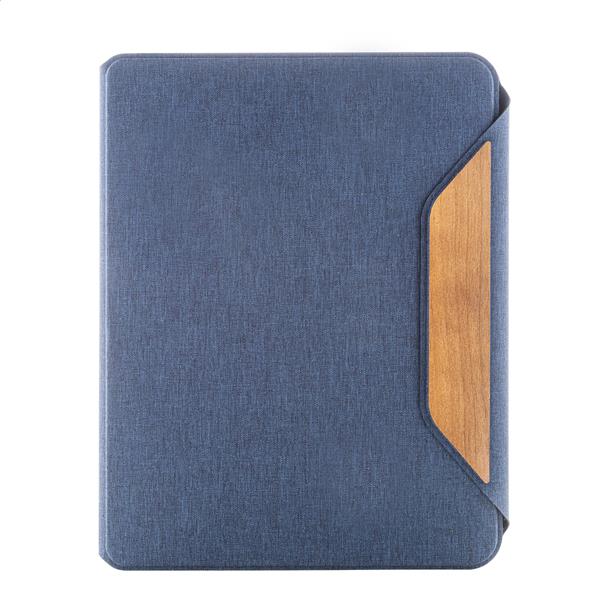 Teczka na dokumenty w formacie A4, wykonana z poliestru RPET, z wieloma wewnętrznymi kieszeniami organizacyjnymi i magnetycznym zamknięciem z detalami z drewna orzechowego. Z 20-kartkowym notatnikiem w linie z papieru z recyklingu.