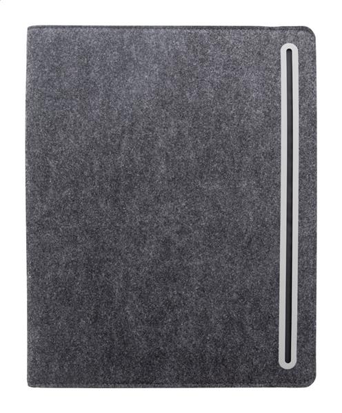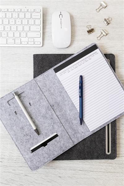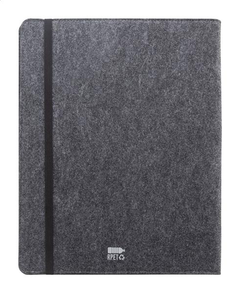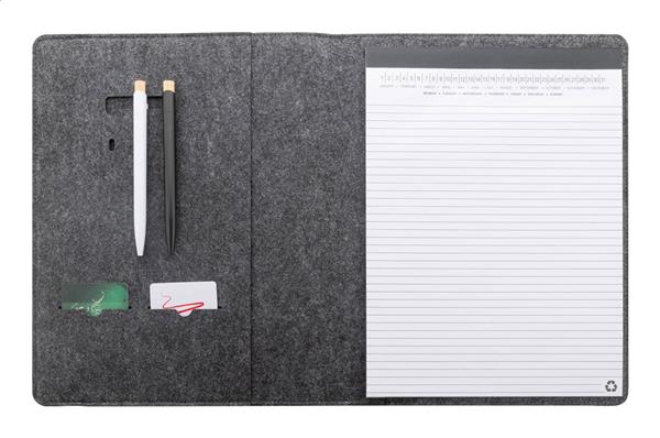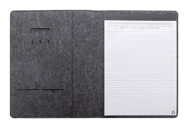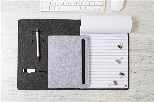 Teczka na dokumenty z filcu RPET w formacie A4 z przednią i wieloma wewnętrznymi kieszeniami organizacyjnymi. Z 20 kartkami w linie z papieru pochodzącego z recyklingu.