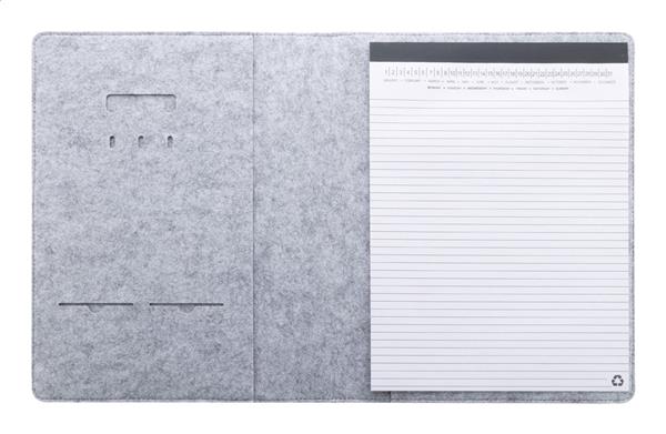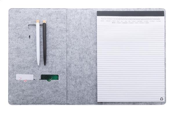 Teczka na dokumenty z filcu RPET w formacie A4 z przednią i wieloma wewnętrznymi kieszeniami organizacyjnymi. Z 20 kartkami w linie z papieru pochodzącego z recyklingu.