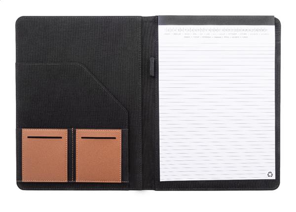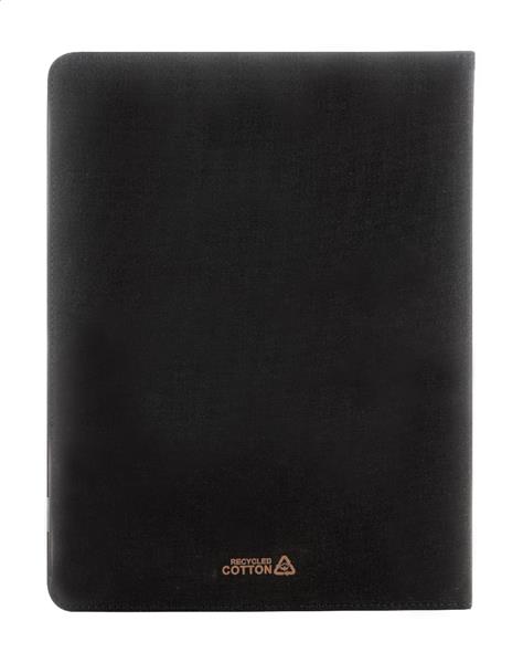 Teczka na dokumenty w formacie A4, wykonana z płótna z recyklingu i skóry PU z recyklingu, z wieloma kieszeniami z przodu i wewnątrz. Zawiera 20-kartkowy notatnik w linie z papieru z recyklingu. 70% bawełny z recyklingu i 30% poliestru RPET.