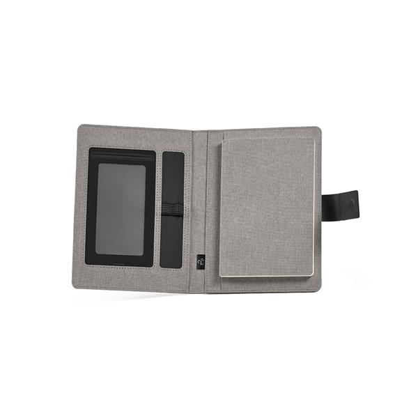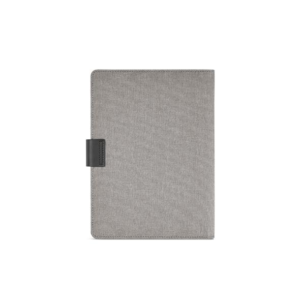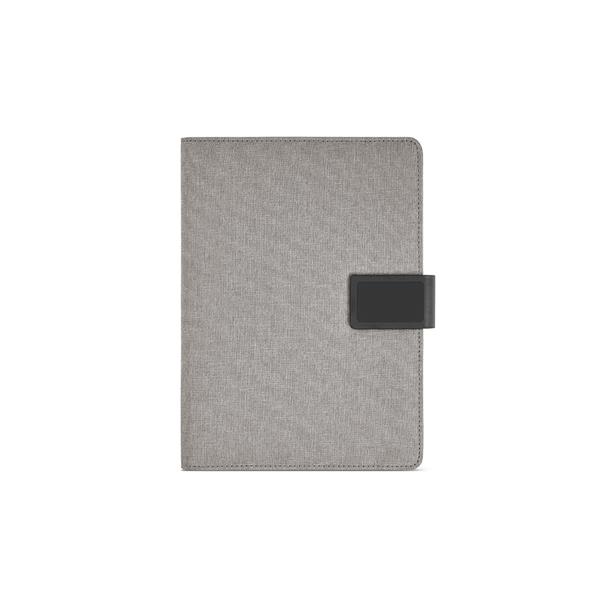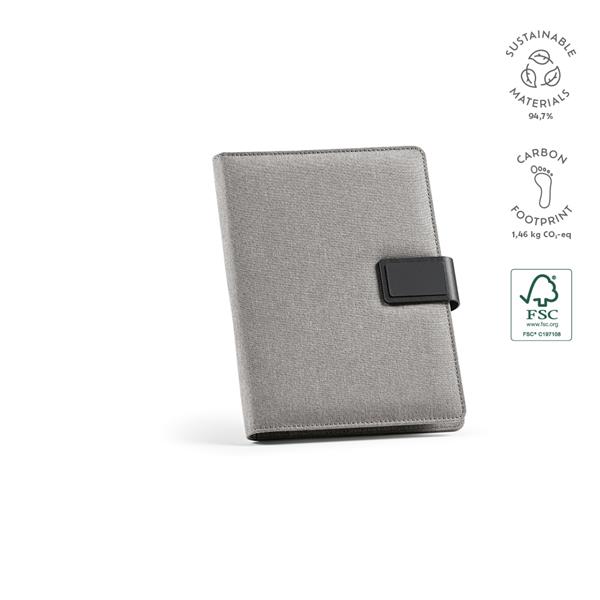 Usprawnij swoją organizację dzięki naszemu folderowi 300D rPET A5 z magnetycznym zamknięciem. Zawiera 64 kartki papieru FSC w kolorze kości słoniowej (70 g/m2) i umożliwia przechowywanie telefonu (do 10 x 18 cm) dzięki dedykowanemu uchwytowi. Uchwyt na kartę i długopis zwiększają wygodę użytkowania.