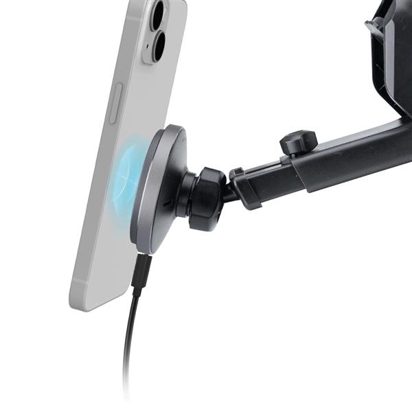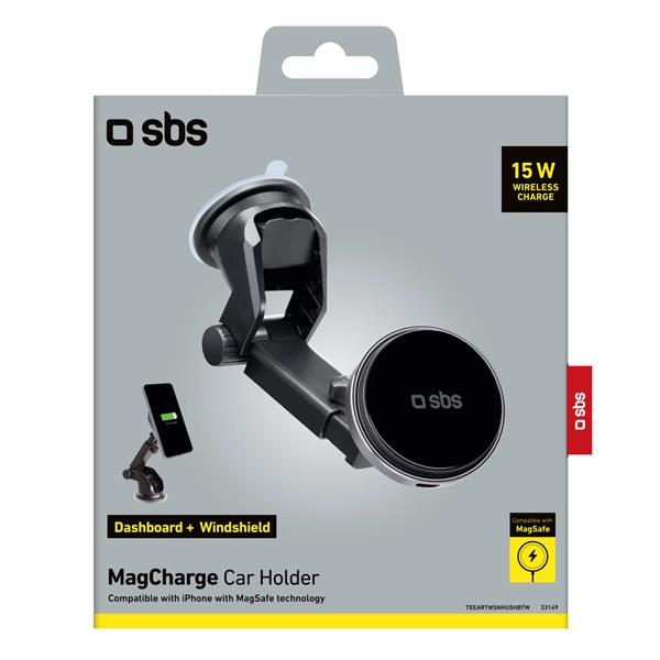 Uchwyt SBS TESUPMAGEXTWIR15W umożliwia magnetyczne mocowanie smartfona dzięki kompatybilności z MagSafe. W zestawie znajdziesz również płytkę metalową, która pozwala na stabilne mocowanie innych urządzeń.