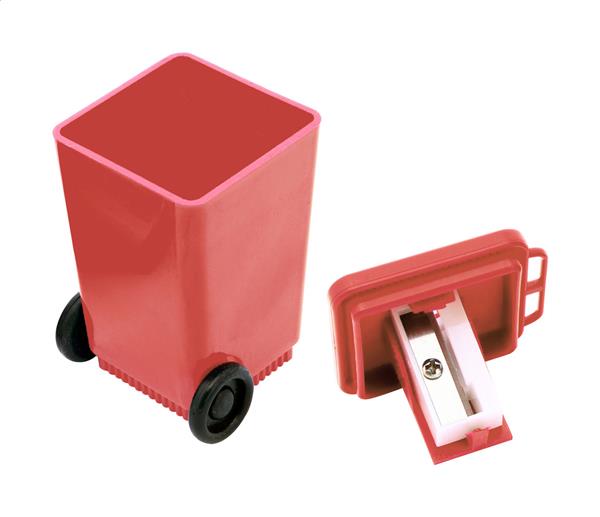 Plastikowa temperówka w kształcie kosza na śmieci. Description: Plastikowa temperówka w kształcie kosza na śmieci. Primary Color: czerwony Material 1: Plastik (ABS) Rozmiar: 37×60×42 mm
