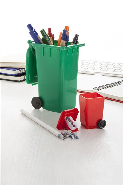 Plastikowa temperówka w kształcie kosza na śmieci.