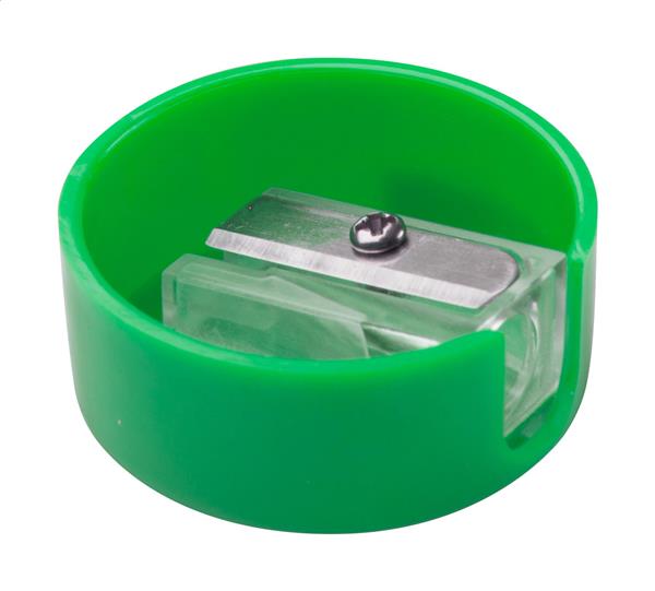 Okrągła plastikowa temperówka. Description: Okrągła plastikowa temperówka. Primary Color: zielony Material 1: Plastik (PS) Rozmiar: o35×14 mm