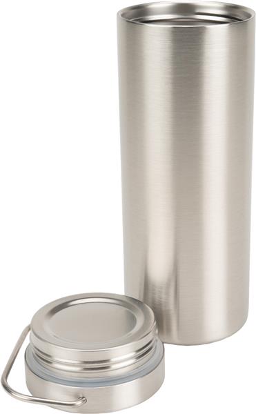 Butelka termiczna o pojemności 600 ml, z podwójnymi ściankami, wykonana ze stali nierdzewnej. Dzięki izolacji próżniowej utrzymuje temperaturę napojów przez długi czas.