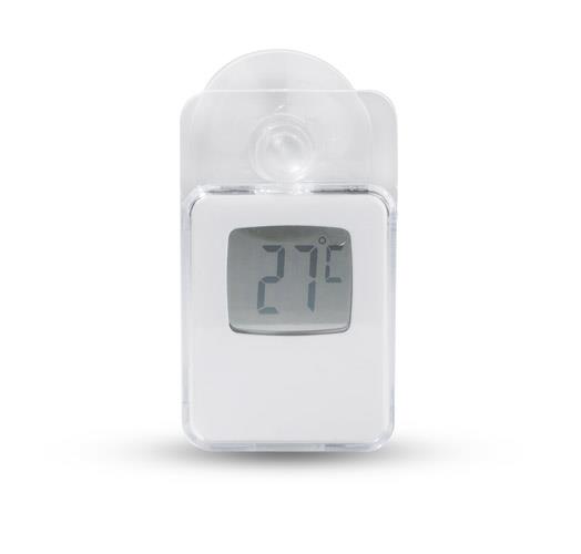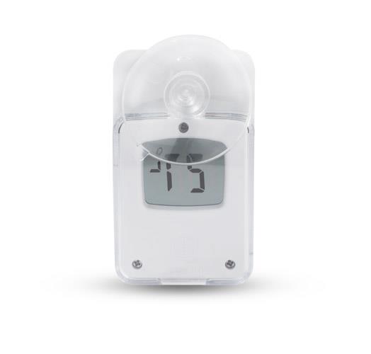 Prosty i elegancki termometr cyfrowy z przyssawką, który może posłużyć również jako termometr zewnętrzny. Zakres temperatur: -20?C – 50?C