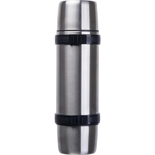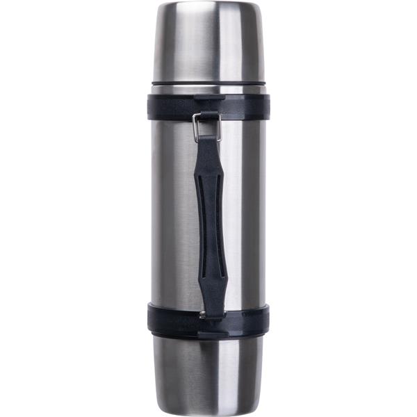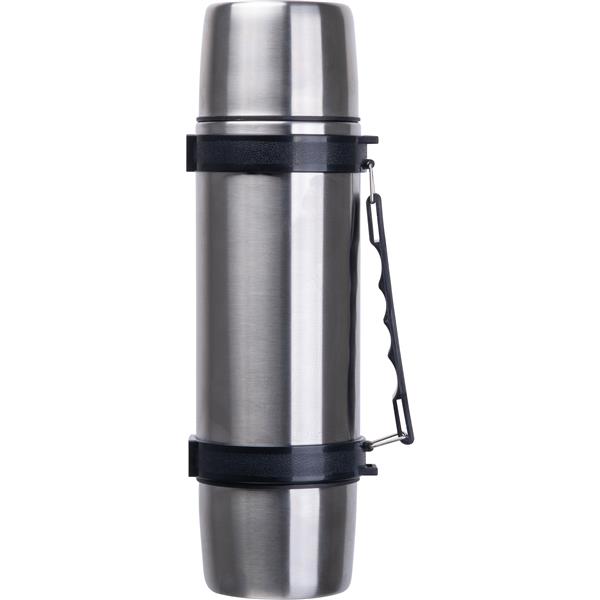 Wytrzymały termos ze stali nierdzewnej o pojemności 1000 ml z dwoma kubkami w zestawie, idealny na wyprawy i użytek outdoor. Termos wyposażony jest w praktyczny uchwyt i pas do przenoszenia.