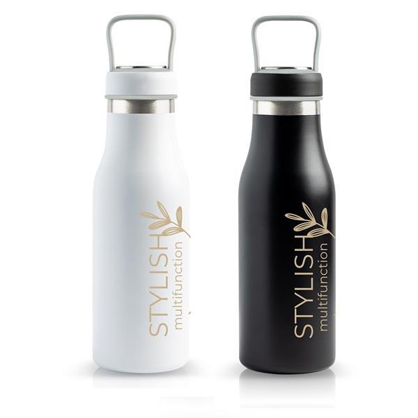 Termos z przegródką w pokrywie. Butelka, która utrzymuje ciepło lub zimno przez kilka godzin. Idealny do zabrania ze sobą wszędzie, czy to na co dzień w pracy, czy nawet na siłownię. Schowek w nakrętce pozwala na przechowywanie wielu różnych rzeczy, w tym tabletek, suplementów lub aromatów do wody, a nawet klucza do zamka szafki, dzięki czemu nie zgubisz go podczas treningu.