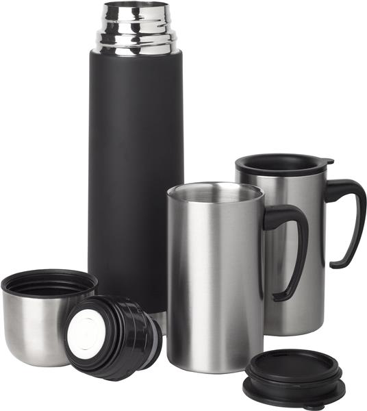 Zestaw podróżny, termos 500 ml z podwójnymi ściankami i 2 kubki 260 ml, w pokrowcu z paskiem na ramię, utrzymuje temperaturę napojów gorących do 20 godzin +leakproof