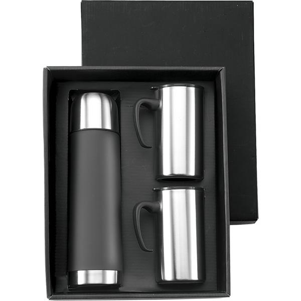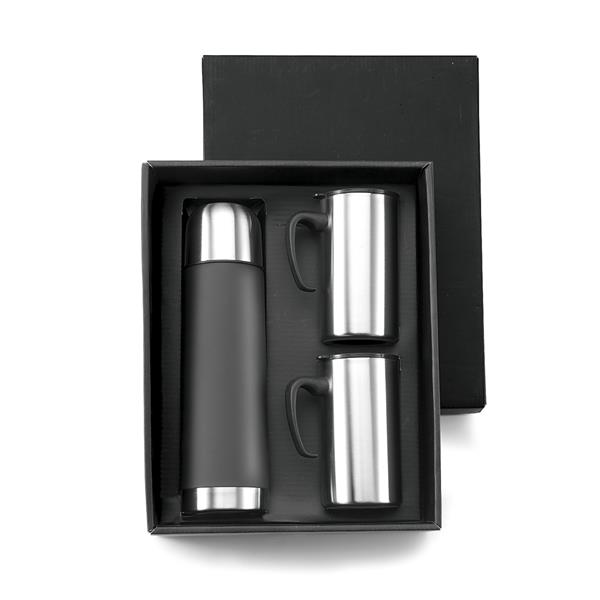 Zestaw podróżny, termos z podwójnymi ściankami 500 ml i 2 kubki 300 ml, w pudełku, klasa termiczna: A +leakproof
