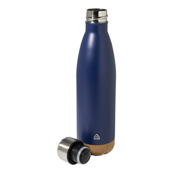 Butelka z podwójną ścianką, izolowana próżniowo ze stali nierdzewnej pochodzącej z recyklingu, z podstawą z naturalnego korka. 500 ml