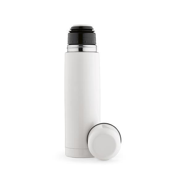 Wzbogac swój dzien dzieki naszemu termosowi o pojemnosci 500 ml – jego zywym kolorom i ekologicznej energii. Wykonany z recyklingowanej stali nierdzewnej z podwójna izolacja prózniowa, utrzymuje napoje w najlepszym stanie, zarówno podczas wedrówki, jak i w biurze (kubek 9,9 cl).