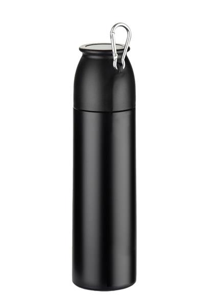 Termos FAZARI 500 ml wykonany jest ze stali nierdzewnej, dzięki czemu skutecznie utrzymuje temperaturę napojów do 8 godzin. Wyposażony w wygodny mechanizm otwierania typu „naciśnij”, który ułatwia korzystanie z termosu w podróży czy w samochodzie. Klasyczna, gwintowana zakrętka pełni funkcję kubeczka, a dołączony karabińczyk umożliwia przypięcie termosu do torby lub plecaka. Smukła konstrukcja typu slim sprawia, że z łatwością mieści się w uchwytach samochodowych i bocznych kieszeniach plecaków.