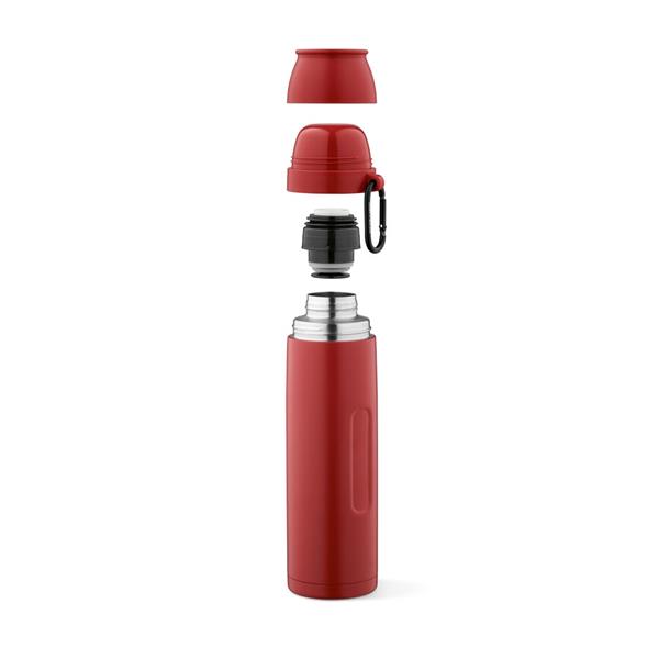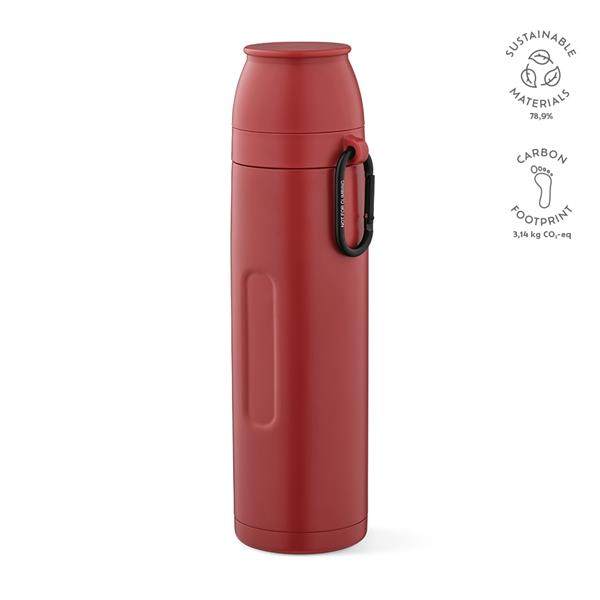 Termos o pojemności 1080 ml (1000 ml netto) jest wykonany z recyklingowanej stali nierdzewnej, ma ergonomiczną konstrukcję i karabińczyk ułatwiający transport. Dwuścienna izolacja próżniowa sprawia, że idealnie nadaje się do wszelkich aktywności na świeżym powietrzu. Pożegnaj się z wyciekami i kłopotami.