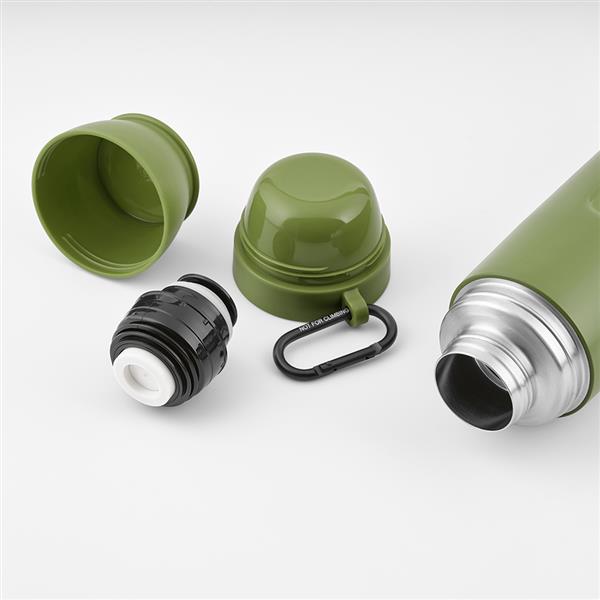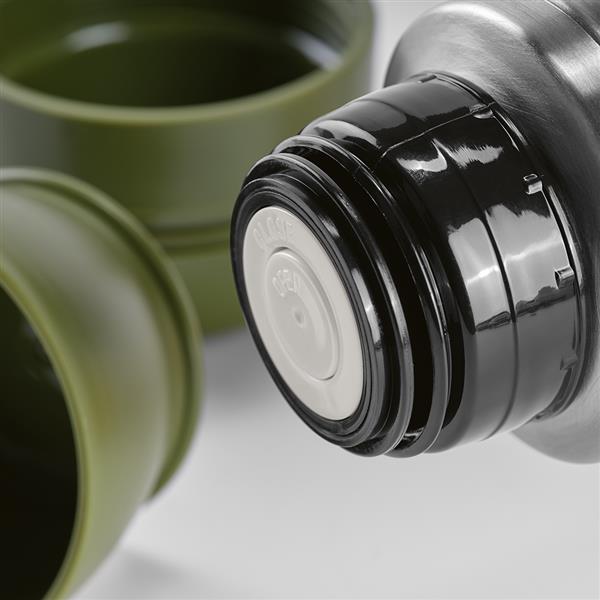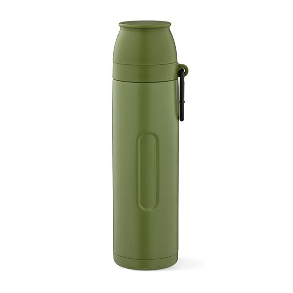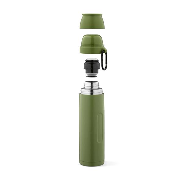 Termos o pojemności 1080 ml (1000 ml netto) jest wykonany z recyklingowanej stali nierdzewnej, ma ergonomiczną konstrukcję i karabińczyk ułatwiający transport. Dwuścienna izolacja próżniowa sprawia, że idealnie nadaje się do wszelkich aktywności na świeżym powietrzu. Pożegnaj się z wyciekami i kłopotami.