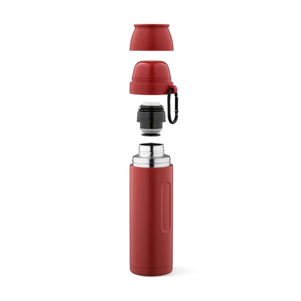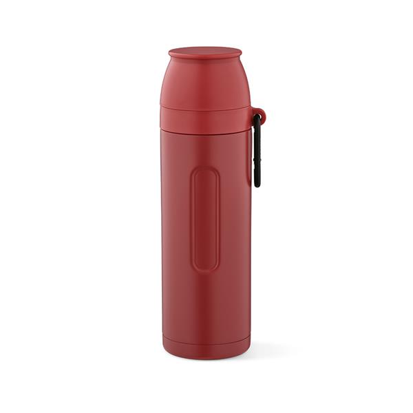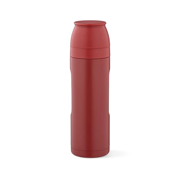 Ten termos o pojemnosci 810 ml (750 ml netto) z recyklingowanej stali nierdzewnej posiada karabinczyk ulatwiajacy transport. Izolacja o podwójnych sciankach utrzymuje napoje idealnie gorace lub zimne. W pracy i w podrózy, kazdy lyk to ekologiczna przyjemnosc dzieki 2 kubkom (19cl i 22cl) i ergonomicznemu korpusowi.
