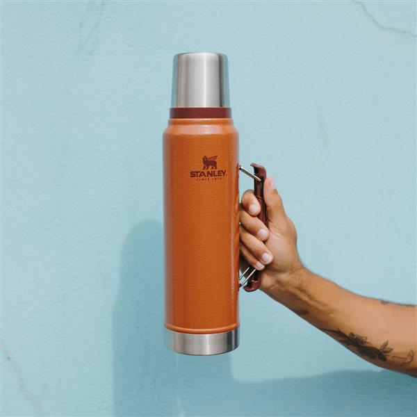 legendarnej jakości termos, który trzyma temperaturę aż 40 godzinMożesz z nim wędrować, łowić lub polować bez obawy, że skończy się Twój ulubiony gorący napój.Sprawdzi się w pracy na zewnątrz, podczas rodzinnych wyjazdów za miasto, jak i pikników ze znajomymi.Mimo swoich gabarytów jest bardzo poręczny.Termos posiada przepływowy korek, co oznacza, że nie trzeba go odkręcać do końca, wystarczy lekko odkręcić i przechylić termos by napełnić kubek. Takie rozwiązanie chroni napój przed niepotrzebnym wychłodzeniem i przypadkowym zgubieniem korka.Termos jest w 100% szczelny.Składana rączka z wygodnym silikonowym wykończeniem zapewnia stabilny, pewny uchwyt podczas przenoszenia, jak i nalewania.Zakrętka termosu pełni również rolę kubka do picia napoju.Zastosowana izolacja próżniowa pomiędzy 2 stalowymi ściankami, pozwala utrzymać temperaturę napoju:gorącego lub zimnego do 24 godzin,a po dodaniu dużej ilości lodu nawet do 5 dni.Szeroki wlot ułatwia nalewanie, oraz pozwala dokładnie umyć wnętrze.Wykonany z niezwykle wytrzymałej stali nierdzewnej 18/8, naturalnie wolnej od BPA.Podawane pomiary zdolności utrzymania temperatury przez produkt dotyczą pełnego naczynia, nieotwieranego przez określony czas. Korzystanie z niego w jego trakcie wiąże się ze stopniową utratą początkowej temperatury. Aby zoptymalizować działanie termosów i kubków, przed włożeniem do niego właściwych produktów, należy napełnić je gorącą lub zimną wodą i na pięć minut pozostawić w szczelnym zamknięciu.
