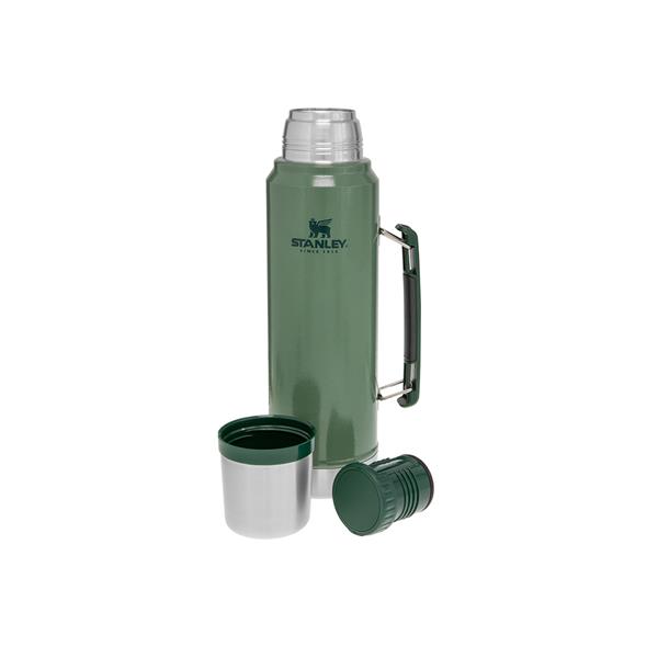 legendarnej jakości termos, który trzyma temperaturę aż 40 godzinMożesz z nim wędrować, łowić lub polować bez obawy, że skończy się Twój ulubiony gorący napój.Sprawdzi się w pracy na zewnątrz, podczas rodzinnych wyjazdów za miasto, jak i pikników ze znajomymi.Mimo swoich gabarytów jest bardzo poręczny.Termos posiada przepływowy korek, co oznacza, że nie trzeba go odkręcać do końca, wystarczy lekko odkręcić i przechylić termos by napełnić kubek. Takie rozwiązanie chroni napój przed niepotrzebnym wychłodzeniem i przypadkowym zgubieniem korka.Termos jest w 100% szczelny.Składana rączka z wygodnym silikonowym wykończeniem zapewnia stabilny, pewny uchwyt podczas przenoszenia, jak i nalewania.Zakrętka termosu pełni również rolę kubka do picia napoju.Zastosowana izolacja próżniowa pomiędzy 2 stalowymi ściankami, pozwala utrzymać temperaturę napoju:gorącego lub zimnego do 24 godzin,a po dodaniu dużej ilości lodu nawet do 5 dni.Szeroki wlot ułatwia nalewanie, oraz pozwala dokładnie umyć wnętrze.Wykonany z niezwykle wytrzymałej stali nierdzewnej 18/8, naturalnie wolnej od BPA.Podawane pomiary zdolności utrzymania temperatury przez produkt dotyczą pełnego naczynia, nieotwieranego przez określony czas. Korzystanie z niego w jego trakcie wiąże się ze stopniową utratą początkowej temperatury. Aby zoptymalizować działanie termosów i kubków, przed włożeniem do niego właściwych produktów, należy napełnić je gorącą lub zimną wodą i na pięć minut pozostawić w szczelnym zamknięciu.