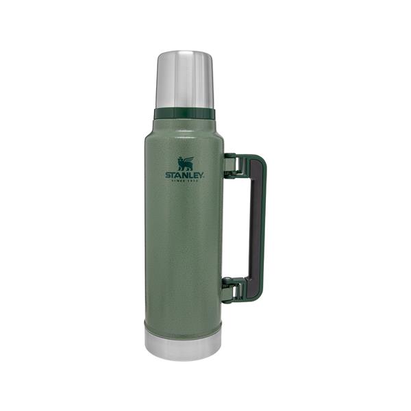 legendarnej jakości termos, który trzyma temperaturę aż 40 godzinMożesz z nim wędrować, łowić lub polować bez obawy, że skończy się Twój ulubiony gorący napój.Sprawdzi się w pracy na zewnątrz, podczas rodzinnych wyjazdów za miasto, jak i pikników ze znajomymi.Mimo swoich gabarytów jest bardzo poręczny.Termos posiada przepływowy korek, co oznacza, że nie trzeba go odkręcać do końca, wystarczy lekko odkręcić i przechylić termos by napełnić kubek. Takie rozwiązanie chroni napój przed niepotrzebnym wychłodzeniem i przypadkowym zgubieniem korka.Termos jest w 100% szczelny.Składana rączka z wygodnym silikonowym wykończeniem zapewnia stabilny, pewny uchwyt podczas przenoszenia, jak i nalewania.Zakrętka termosu pełni również rolę kubka do picia napoju.Zastosowana izolacja próżniowa pomiędzy 2 stalowymi ściankami, pozwala utrzymać temperaturę napoju:gorącego do 40 godzin,zimnego do 35 godzin,a po dodaniu dużej ilości lodu nawet do 6 dni.Szeroki wlot ułatwia nalewanie, oraz pozwala dokładnie umyć wnętrze.Wykonany z niezwykle wytrzymałej stali nierdzewnej 18/8, naturalnie wolnej od BPA.Podawane pomiary zdolności utrzymania temperatury przez produkt dotyczą pełnego naczynia, nieotwieranego przez określony czas. Korzystanie z niego w jego trakcie wiąże się ze stopniową utratą początkowej temperatury. Aby zoptymalizować działanie termosów i kubków, przed włożeniem do niego właściwych produktów, należy napełnić je gorącą lub zimną wodą i na pięć minut pozostawić w szczelnym zamknięciu.