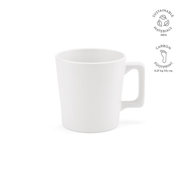 Ceramiczny kubek o pojemności 270 ml (220 ml netto) z matowym wykończeniem emanuje elegancją. Wytrzymuje 125 cykli mycia w zmywarce i jest równie trwały, co stylowy. Dostarczany w indywidualnym pudełku, jest czymś więcej niż tylko kubkiem; to Twoja codzienna przyjemność.