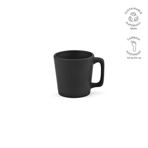 Ten niewielki kubek ceramiczny o pojemności 75 ml (60 ml netto) jest niezwykły. Jego matowe wykończenie emanuje elegancją i jest wojownikiem przeciwko 125 cyklom zmywania w zmywarce. Dostarczany we własnym pudełku, to więcej niż kubek; to codzienna radość w kompaktowej formie.
