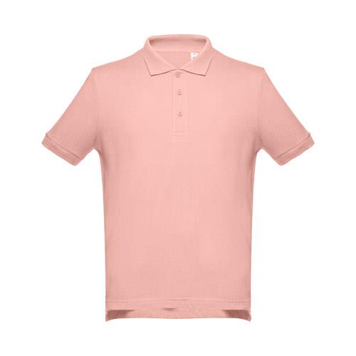 Męska koszulka polo z krótkim rękawem, ze 100% bawełny o splocie piqué (195 g/m2) (Kolor 183: 85% bawełna/15% wiskoza). Kołnierzyk i mankiety z prążkowanym wykończeniem. Kołnierzyk jest wzmocniony taśmą piqué. Z przodu przy kołnierzyku znajdują się 3 pasujące kolorystycznie guziki (dodatkowy guzik na wewnętrznym szwie). Zszywana po bokach, z małymi rozcięciami w szwach bocznych u dołu. Rozmiary: S, M, L, XL, XXL Rozmiary: S, M, L, XL, XXL