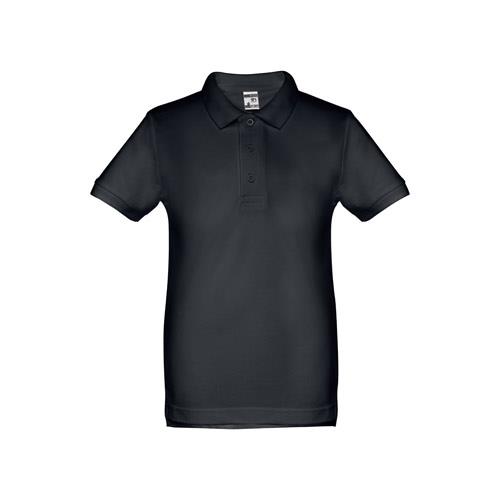 Dziecięca koszulka polo (unisex), ze 100% bawełny o splocie piqué (195 g/m2). Kołnierzyk i mankiety z prążkowanym wykończeniem. Kołnierzyk jest wzmocniony taśmą piqué. Z przodu przy kołnierzyku znajdują się 3 pasujące kolorystycznie guziki (dodatkowy guzik na wewnętrznym szwie). Zszywana po bokach, z małymi rozcięciami w szwach bocznych u dołu. Rozmiary: 2, 4, 6, 8, 10, 12
