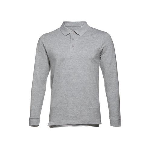 Męski t-shirt polo z długim rękawem ze 100% bawełny o splocie piqué (210 g/m2) ze zgrzebną przędzą bawełnianą (kolor 183: 85% bawełna/15% wiskoza). Polo o regularnym fasonie, z prążkowanym kołnierzykiem i rękawami. Kołnierzyk jest wzmocniony taśmą piqué. Posiada 3 dopasowane kolorystycznie guziki (dodatkowy guzik umieszczony w szwie wewnętrznym). Zszywany po bokach, z małymi rozcięciami w szwach bocznych. Rozmiar: 3XL