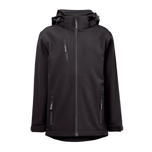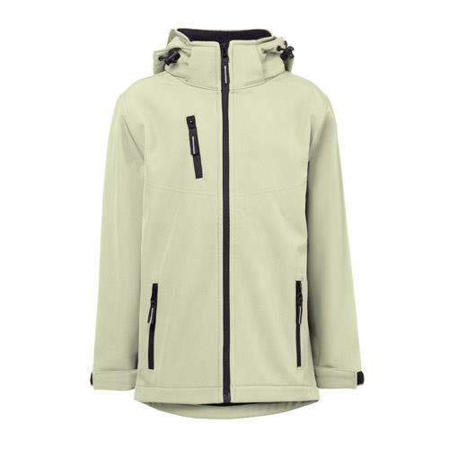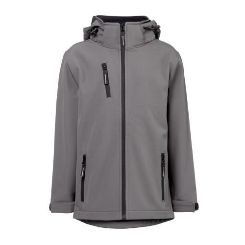 Kurtka dziecięca wykonana w 96% z poliestru softshell pochodzącego z recyklingu i w 4% z elastanu (280 g/m2), z dwoma sznurkami i wodoodporną podszewką. Kurtka z polarową podszewką (100% poliester z recyklingu) z 2 przednimi kieszeniami i ukośną kieszenią na piersi, obie zapinane na zamek. Odpinany i regulowany kaptur ze sznurkiem ściągającym i samoprzylepnym paskiem na suwak do dopasowania do kołnierza. Zapięcie z przodu na zamek błyskawiczny YKK® – marki, która korzysta z nowoczesnego sprzętu i wysokiej jakości kontroli. Regulowane ściągacze rękawów z samoprzylepnym paskiem. Zaokrąglona dolna część pleców. Rozmiary: 4, 6, 8, 10, 12