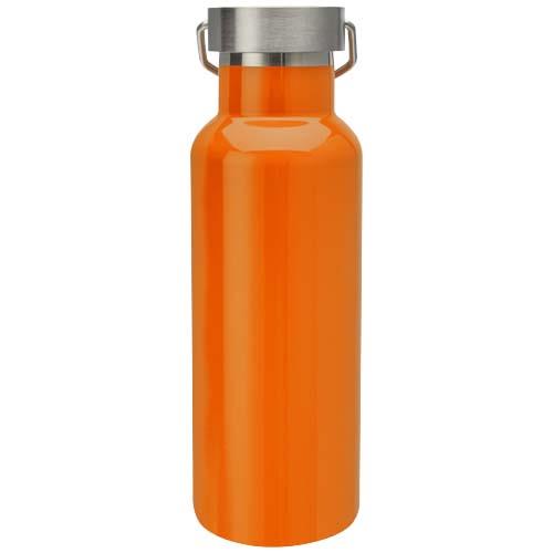Wytrzymała butelka na wodę ze stali nierdzewnej z certyfikatem RCS i podwójnymi ściankami z izolacją próżniową, z zakręcaną pokrywką ze stali nierdzewnej i trwałym uchwytem ze stali nierdzewnej. Pojemność: 500 ml. Szczelne. Zapakowane w pudełko podarunkowe.