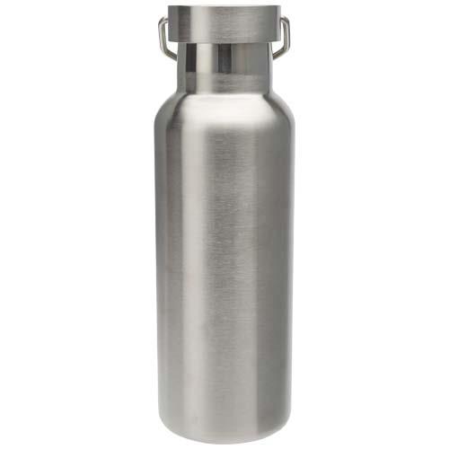 Wytrzymała butelka na wodę ze stali nierdzewnej z certyfikatem RCS i podwójnymi ściankami z izolacją próżniową, z zakręcaną pokrywką ze stali nierdzewnej i trwałym uchwytem ze stali nierdzewnej. Pojemność: 500 ml. Szczelne. Zapakowane w pudełko podarunkowe.