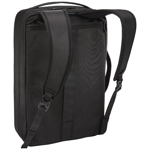 Ekologiczna teczka 2 w 1, która zamienia się w plecak ułatwiający podróże służbowe. Posiada dedykowane kieszenie na 16-calowy laptop MacBook® lub 15,6-calowy komputer PC oraz 10,5-calowy tablet. Wiele wewnętrznych kieszeni organizacyjnych pozwala zabezpieczyć zawartość w trybie teczki lub plecaka, a odpinany, wyściełany pasek na ramię umożliwia wygodne noszenie w trybie teczki. Wykonany w 100% materiału poliestrowego 1680 pochodzącego z recyklingu, z zamkami YKK.