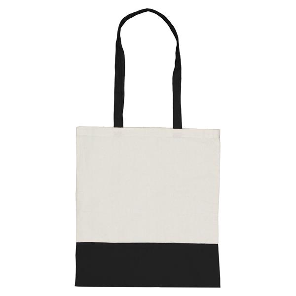 Torba na zakupy, posiada długie uchwyty umożliwiające noszenie na ramieniu, produkt wykonany z bawełny o gramaturze 140 g/m2