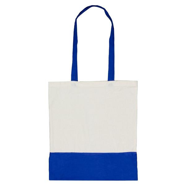 Torba na zakupy, posiada długie uchwyty umożliwiające noszenie na ramieniu, produkt wykonany z bawełny o gramaturze 140 g/m2