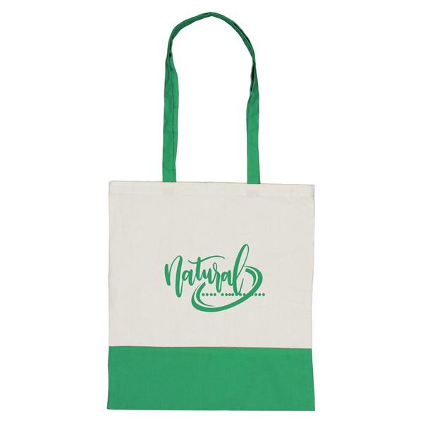 Torba na zakupy, posiada długie uchwyty umożliwiające noszenie na ramieniu, produkt wykonany z bawełny o gramaturze 140 g/m2