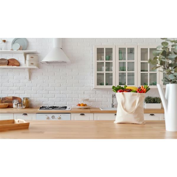 Bawełniana torba na zakupy, posiada długie uchwyty umożliwiające noszenie na ramieniu, produkt wykonany z bawełny o gramaturze 180 g/m2, zgodna z certyfikatem OEKO-TEX Standard 100