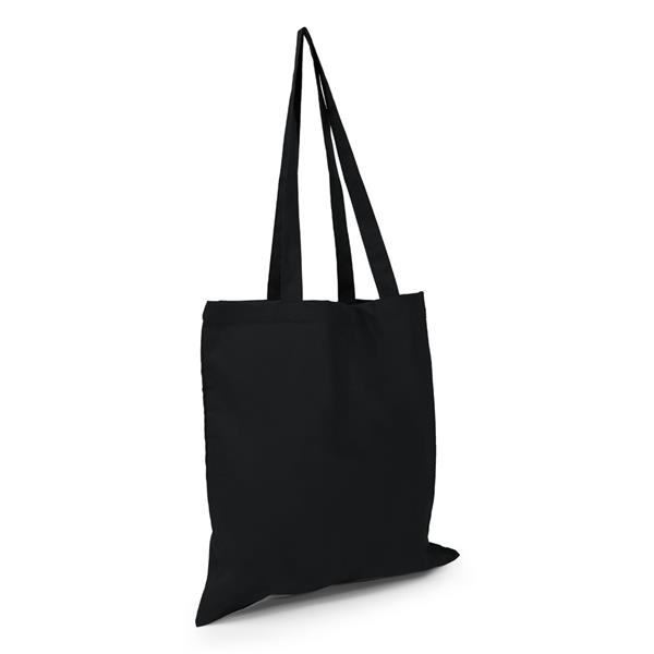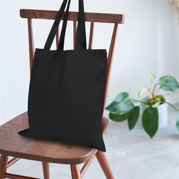 Torba na zakupy, posiada długie uchwyty umożliwiające noszenie na ramieniu, produkt wykonany z bawełny o gramaturze 180 g/m2