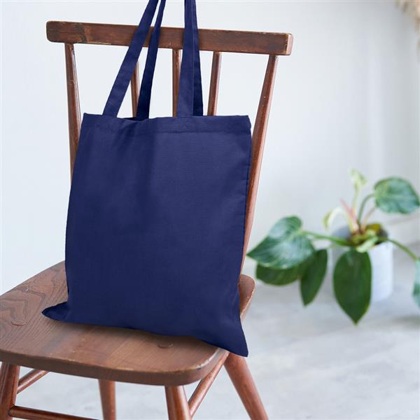 Torba na zakupy, posiada długie uchwyty umożliwiające noszenie na ramieniu, produkt wykonany z bawełny o gramaturze 180 g/m2